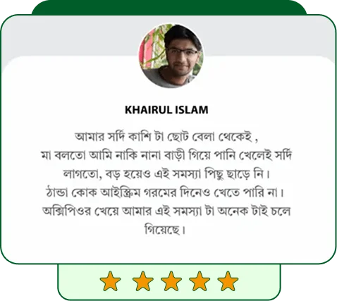 জ্বী, আগে অষুধ সেবন করেছেন, কার্যকর অষুধ পাননি বলেই হয়তো সুস্থ হননি। সুস্থ হতে শুধু মেডিসিন নয়, কার্যকর মেডিসিন প্রয়োজন, যা অনেকেই দেয় না। বা দিতে চাইলেও ফর্মুলা জানেনা। আমরা প্রায় ৫বছর ধরে অনলাইনে ও অফলাইনে বিশ্বস্ততার সহিত সেবা দিচ্ছি এবং আরও ১০০ বছর সেবা দিতে চাই ইনশাআল্লাহ।। এজন্য কাস্টমারের বিশ্বাস ও সন্তুষ্টি আমাদের কাছে সবচেয়ে গুরুত্বপূর্ণ। তাই আগে কী সেবন করেছেন, তা নিয়ে ভাবনার প্রয়োজন নেই। আমাদের প্রোডাক্ট গ্রহণ করলে সুস্থ হবেন, ইনশাআল্লাহ।